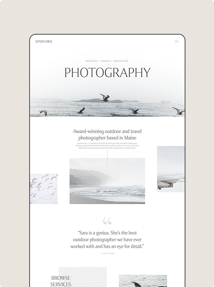 Designed for: small businesses, non-profits, churches, photographers, interior designers, architects, creative agencies, micro bloggers